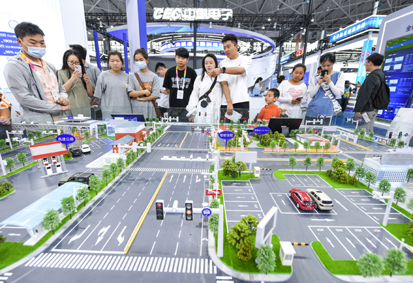 观众参观智能交通系统。
