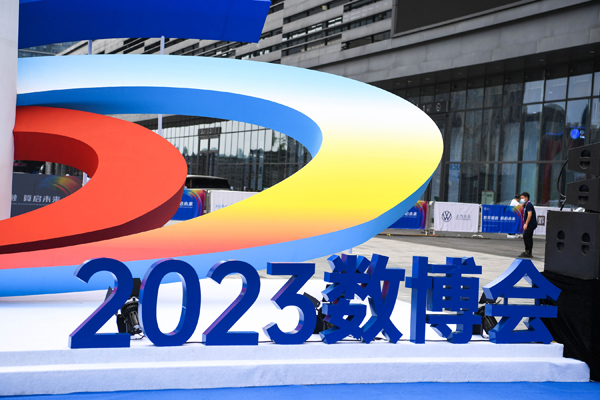 数博会展馆外的标志牌。