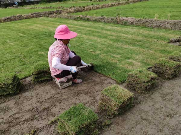 记者在一个村庄看到,一辆“后八轮”大货车停在村口,一捆捆草皮被整齐码放在车厢上。每块草皮的长宽均约为40公分,草皮粘着约1公分厚的泥土。在和搬运工人攀谈期间,记者看到不时有农用三轮摩托车载着草皮来交卸。一位熊姓村民告诉记者,当天一共要运出约3000平方米的草皮,每平方米的价格在8元左右,这段时间每天都有几辆大货车来村里拉草皮,“会有专人来收购,割完就立即给村民打钱”。他告诉记者。