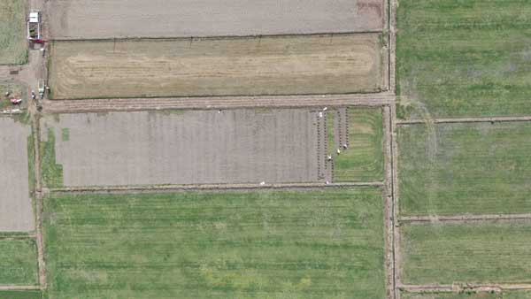 江西一个村庄的草皮收割现场。(无人机拍摄)