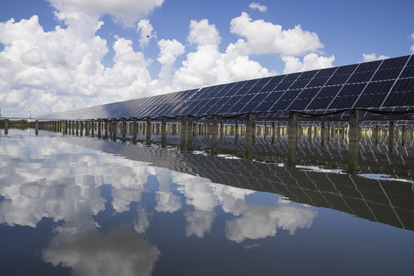 大庆油田星火水面光伏示范工程现场。新华社记者张涛摄