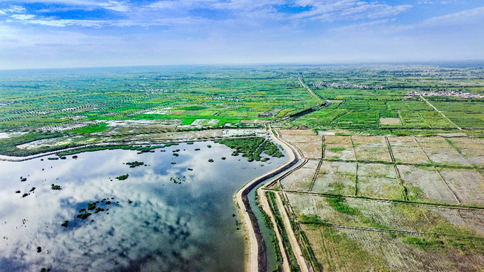 中建一局乌梁素海项目东区项目经理张富成表示,“我们亲眼见证了漫漫黄沙变成茫茫绿野、‘沙进人退’变成‘绿进沙退’。”
