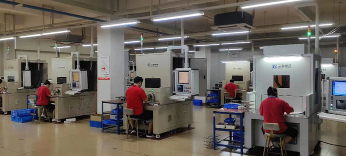 在全国五大眼镜生产基地之一的江西鹰潭市余江区,记者走进鹰潭万成光学科技有限公司的生产车间,只见生产线繁忙运转,工人操作着激光焊接设备,各个点位快速焊接,仅需30秒一副眼镜便能下线。