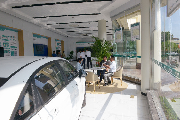 江苏盐城大丰区农村一处新能源汽车4S店内,部分新购车的车主正办理充电桩相关业务。资料照片