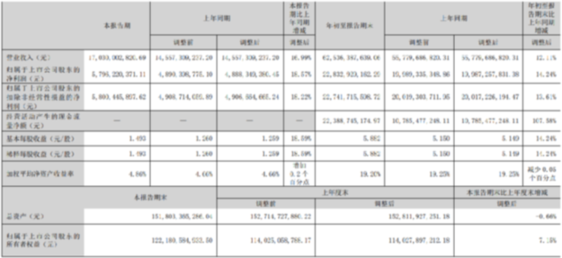 10月27日晚间,五粮液发布《2023年度第三季度报告》。报告显示,2023年1-9月,五粮液实现营业收入625.36亿元,同比增长12.11%;归属上市公司股东的净利润228.33亿元,同比增长14.24%。7-9月,实现营业收入170.30亿元,同比增长16.99%;归属上市公司股东的净利润57.96亿元,同比增长18.57%。2023年前三季度,五粮液继续保持两位数稳健增长,为全年经营目标任务达成奠定坚实基础。