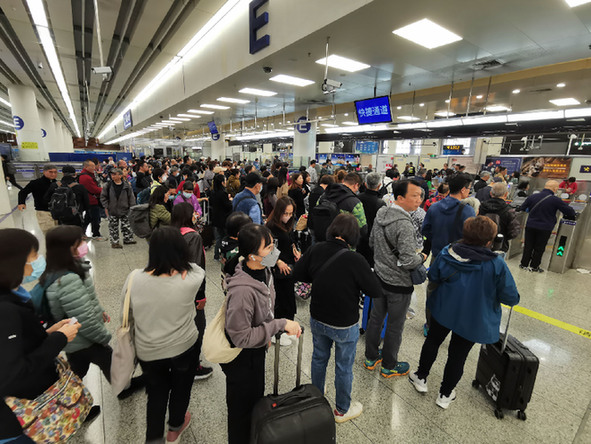 2023年12月29日在深圳福田口岸拍摄的准备通关的旅客。 新华社记者 王丰 摄