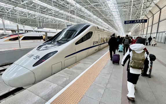 不少北京市民从北京北站乘坐京张高铁的“滑雪专列”去河北省张家口市崇礼区的冬奥滑雪场滑雪、赏雪。 记者 李欣 摄