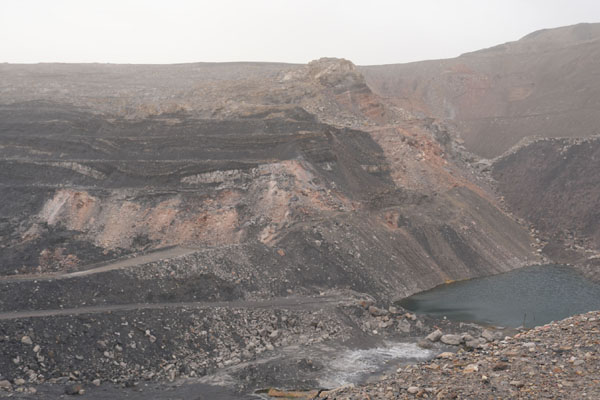 在宁夏贺兰山汝箕沟矿区中槽火区,煤层烧空后引发部分山体滑坡。记者 刘海 摄