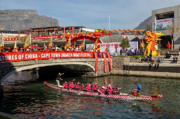 6月8日,人们在南非开普敦参加第二届“文化中国·开普敦龙舟节”比赛。新华社记者王雷摄