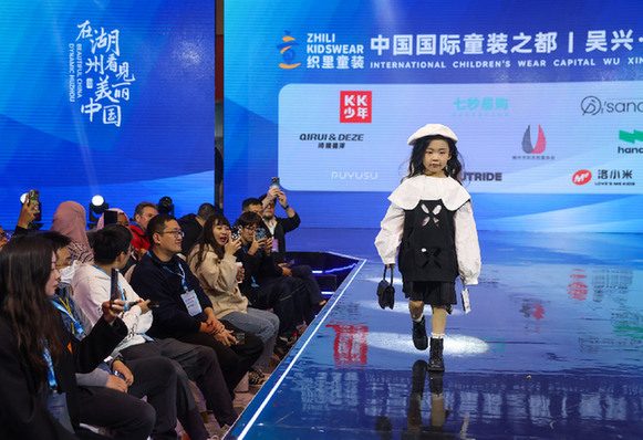 织里镇某童装类活动上,童模正在展示新款童装。资料照片