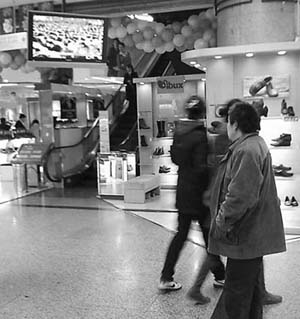 | 图为顾客在蓝岛大厦看直播。张东伟