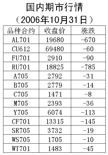 31日,国内期货市场各品种均出现下跌行情。