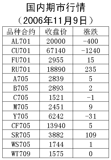 9日国内期货市场行情铜铝下跌,其余品种不同幅度上涨。