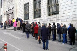 一直以来,国债都因其低风险的特性被誉为“金边债券”,受到稳健型投资者的追捧,这次国债的热销让大家再次感受到普通投资者对资金安全性的重视。 2月26日,曾出现过100亿元建信优化配置股票基金在一小时内即被抢光的火爆场面,而3月1日的国债销售也丝毫不逊色。当日早晨,很多代售国债的银行网点,因为排队购买的投资者过多,而不得不提前半个小时开门发号,许多代销网点营业半个小时之内国债就已售罄。 “我们这点养老钱不求多高的回报,只要能报本,能比储蓄利息高点就成了。”两年前就退了休的谢大爷,起了个大早到建设银行北京分行明日储蓄所门口排队,谢大爷告诉记者,退了休手里有些闲钱,存银行吧利息有点低,前几年在股市里又赔怕了,好歹买点国债没什么风险。 “刚一开门,就有30多位客户排队等着买国债了,如果不提前来排队基本就买不到。”建行明日储蓄所的值班经理告诉记者,他们储蓄所有100万元三年期国债、50万元五年期国债的销售额度,银行规定每个客户最高认购50万元,刚办完手续的几个顾客都是十几万元地买,如果想买还是赶紧到别的网点看看吧。 据记者了解,在北京地区,各承销银行总计50亿元的额度只用半天时间就几乎销售一空。发行首日,工商银行北京分行20亿元国债基本售完,建设银行北京分行的4.5亿元额度也基本售罄,而农业银行北京分行的六亿元、北京银行的三亿元、农村商业银行的2.4亿元额度当日全部售罄。和以往的申购情况相同,在这期国债销售中,仍是三年期国债比五年期国债销售得更快。