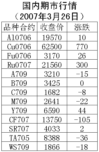 3月26日国内期货市场金属、能源价格上涨,农产品价格下跌。