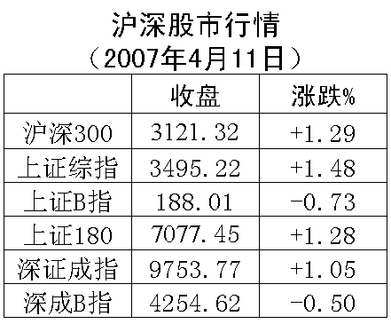 上证综指11日以3454.42点跳空10点高开,随即震荡上行。午后股指曾一度回落至3428.78点的低点,随即又迅速拉升。上摸距3500点整数关口仅“一步之遥”的3497.52点后,上证综指以3495.22点报收,较前一交易日上涨1.48%,全天震幅为2%。