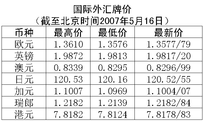 美国15日公布的4月份消费物价指数较预期温和,扣除食品及能源后较前月只上升0.2%,因此虽然电油价格持续高升,但因为没有刺激核心通胀率回升,再次令汇市憧憬美联储会于下半年开始减息。市场关注即将发布的4月房屋动工量,分析认为若其大幅下跌,美元走势将不容乐观。