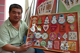 | 赵玉学在展示他收藏的异形扑克牌。本报记者 燕雁 摄 | 本报讯