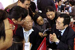 | 一家银行的工作人员(右一)在教市民理财。新华社记者 孙参