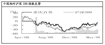 虽然一季度固定资产投资大幅增长28.8%,但同期社会零售品总额增速出现较大幅度下滑。不少机构认为,中央可能加大提振国内消费政策的制定和执行力度,通过改革收入分配政策、减税、发放消费券和调整消费信贷政策等方式来增加消费支出。 中西部地区居民的边际消费倾向更高,考虑到政府在民生方面投入的加大,以及未来的经济刺激政策可能转向消费领域,西部主题中的消费板块或将成为热点。 重庆百货日前公布的2009年一季报显示,一季度,公司实现营业收入21.59亿元,同比增长6.62%;营业利润7448.60万元,同比增长0.60%;归属于母公司所有者的净利润6315万元,同比增长1.35%;实现每股收益0.31元。 中原证券的报告表示,由于2009年春节较早,当年一季度销售旺季比2008年减少半个月,导致重庆百货一季度营业收入增速低于预期。但随着新开门店的逐步成熟,2009年全年营业收入增速仍将达到20%左右。在主营业务的推动下,2009年每股收益预计能达到0.93元。此外,从一季报关于新世纪资产注入一事的披露看,新世纪百货资产注入已基本确定。 中原证券分析师胡铸强认为,2008年,重庆百货新增百货营业网点3家、超市营业网点12家,共计新增营业面积8万平方米。随着新增网点逐步成熟,重庆百货营业收入增速将逐步提高,预计2009年营业收入增速将达到20%。 在营业面积增加16%的情况下,销售费用和管理费用能保持较低增速,显示重庆百货控制销售费用和管理费用效果显著。2009年,由于重庆百货计划新增百货网点仅有1家,开办费支出将大为减少,当年管理费用和销售费用占主营业务收入比例将进一步降低。 不过,重庆百货毛利率略有下降。今年一季度实现毛利率14.70%,较去年同期降低0.45个百分点。毛利率相对较低的超市业务成长迅速和一季度促销力度的增加是公司毛利率降低的主要原因。 中原证券预计,重庆百货2009至2010年的EPS分别为0.91元和1.07元,对应的PE分别为25.22元和21.40倍,维持“买入”评级。但短期内公司股票涨幅较大,存在调整压力。