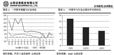 根据汽车工业协会资料,2009年1-4月,马自达6实现销量2.7万辆,同比增长15%;奔腾B70实现销量1.7万辆,同比增长18%。远高于2.0升<排量2.5升乘用车市场1-4月销量同比衰退9%的增速,显示出较强的市场竞争力。随着新马6和奔腾B50的上市,机构普遍预计,新车型将继续推动一汽轿车的业绩增长。