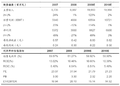 公司预计在2009年6月30日前完成目标资产交割的前提下,2009年归属于母公司所有者净利润能达到63亿左右,每股收益达到0.575元,相对2008年有较大幅度提升。