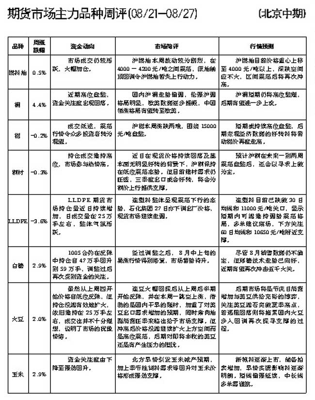 期货市场主力品种周评[8.21—8.27]