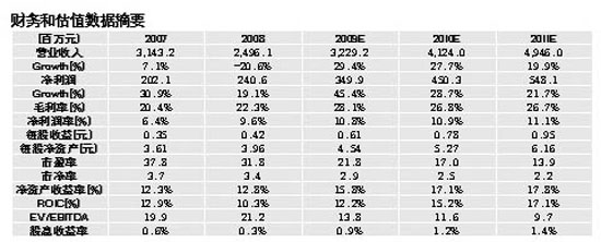长江证券也给予公司较为乐观的判断,采用常规的PE估值,预计2009-2011年EPS分别为0.584、0.891和1.248元;鉴于公司为朝阳行业领头羊,未来高成长比较明确,给予公司2009年30倍,2010年20-25倍PE。