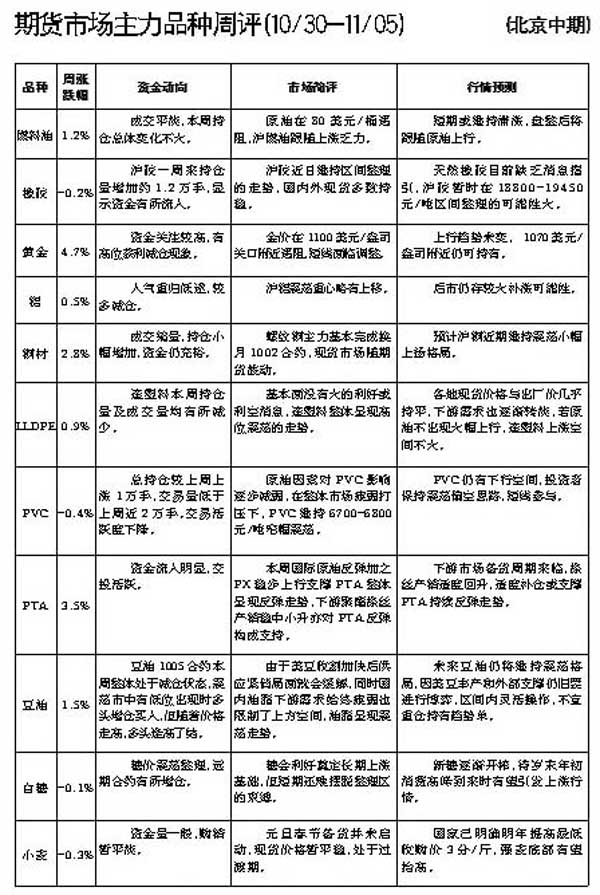 期货市场主力品种周评[10.30—11.05]