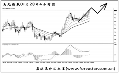 美联储在北京时间1月28日凌晨宣布了新一期利率决议,同时联储给出了关于美国经济前景略显乐观的解读,但美联储仍旧宣布维持基准利率在0-0.25%的历史低位以支持温和的经济复苏。 随着二战以来最严重经济危机的渐行渐远,美联储正在逐步退出其庞大的经济刺激计划以避免触发通胀。美联储公开市场委员会本次对经济的描述措辞有所改变,表示“经济复苏在一段时间以内有可能保持温和”,而自2009年4月以来,美联储此前的措辞一直为:美国经济“很有可能在一段时间以内仍旧保持疲软”。联储同时表示,经济活动持续“加强”,较去年12月份所描述的“上升”更为乐观。尽管美联储对美国经济的前景有所改观,但仍旧重申,由于美国失业率依旧保持高位,且通胀仍然维持低水平,美联储将在未来“一段时间”以内继续维持联邦基金基准利率于纪录低位。 随着美国经济状况的逐渐改善,美联储表示打算在3月31日之前结束1.25万亿美元的抵押贷款支持证券和1750亿美元的机构债购买。购买计划已促使抵押贷款利率降低,这对美国住房和金融市场的推动起到了重要作用。当美联储停止购买计划,抵押贷款利率应该会转而走高。美联储表示,如果经济状况变坏,美联储仍然准备改变抵押贷款支持证券的购买和流动性计划,这显示出美联储对经济复苏的持续性仍旧持担忧态度。 自美联储上次会议以来,美国经济数据结果大体上与美国经济的复苏进程相一致,美国经济复苏目前正处于这一阶段,即经济仍旧保持温和,不足以触发通胀风险,且并不足以令失业率大幅下降。美国去年第四季度经济增长率很有可能较第三季度2.2%的增幅超出一倍之多。而第四季度经济实现大幅增长的原因有可能只是临时因素所起的作用,比如说美国正在重建其库存以及政府刺激计划正趋于结束。 美元指数经过了一周多的盘整之后继续创出新高,涨势延续,图中均线系统依托汇价,但短线的上涨动能明显减弱。从日线图上看,美元指数目前仍在走大C浪反弹的可能性较大,上方的强阻力在81.45,预计美元指数小幅调整之后将向此位置发起冲击。