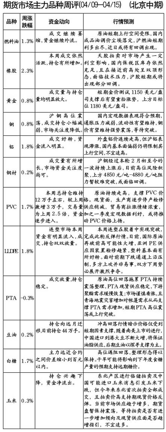 期货市场主力品种周评[04.09-04.15]