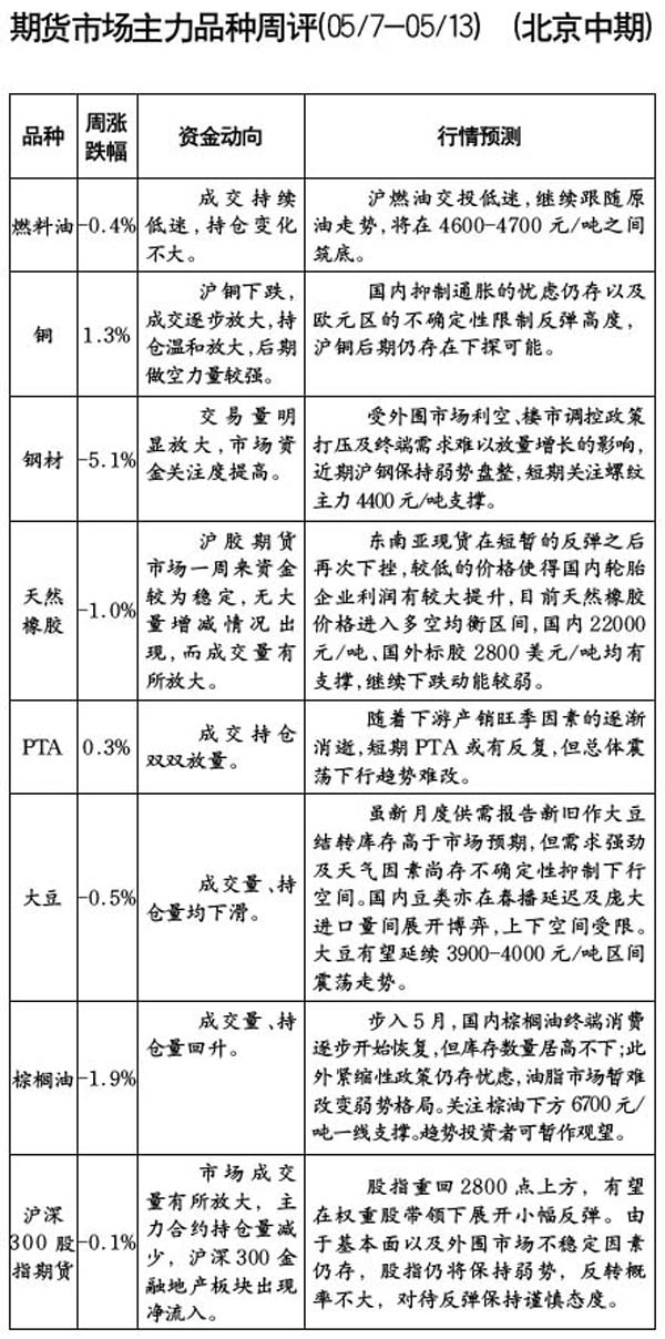 期货市场主力品种周评[05.07-05.13]