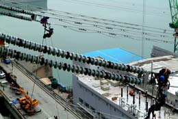 5月25日,三峡右岸电站送电工程线路架设全部完工,为右岸电站机组投产发电奠定了基础。三峡右岸电站500千伏输电系统采用7回线路向华中、华东、华南等地区送电。