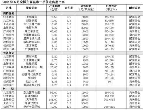 2007年6月全国主要城市一手住宅典型个案