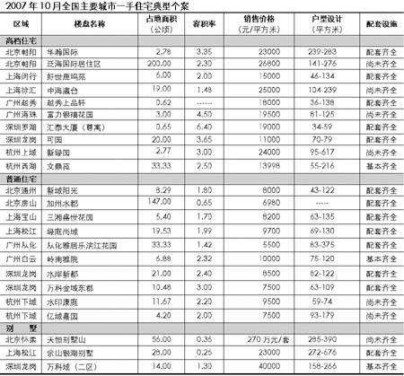 2007年10月全国主要城市住宅价格一览[图]