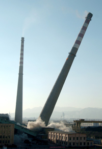 呼和浩特市热电厂小火电被成功爆破拆除