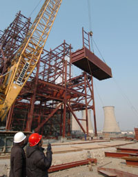 今年以来,天津石化进一步加快100万吨乙烯工程及配套项目建设步伐,目前工程配套项目的道路、网管、热电工程等土建施工已全面展开。图为天津乙烯工程建设者在进行配套项目的主厂房施工。