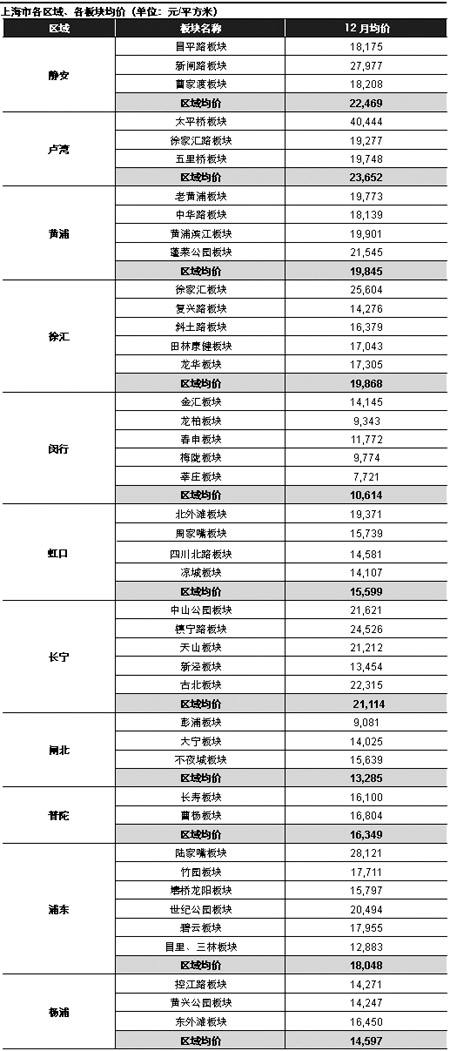 2007年12月,中原(上海)领先指数为152点,样本成交均价17197元/平方米,环比上扬1.27%。另外根据中原12月的成交统计数据显示,12月住宅买卖成交量继续下滑,比11月减少了20%左右。