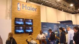 作为世界最大的消费电子展,2008年的CES云集了140多个国家和地区的14万名商人和30万件新产品,其中,中国企业已经成为CES上不可忽略的力量。据CEA总裁Gary介绍,本年度中国参展商数量比去年增加了20%,2007年是311家,今年是383家。不过,最令人关注的还是再次进入CES中央展厅的海尔。 在海尔300多平方米的展位上,海尔全球率先推出的同时具备高清显像技术与追时可录技术双重基因的宝蓝流媒体电视上播放的NBA比赛画面动感十足,吸引了无数参观者驻足欣赏。不仅如此,海尔彩电的布展融入了NBA这样一种具有全球化冲击力的元素,成为展会最大亮点之一。 在展会上,由美国国际数据集团、美国锐德商业集团、中国电子商会共同主办的“中国消费电子产业领先品牌TOP10”同时揭晓,海尔被评为中国消费电子产业第一品牌。 据了解,CES中央展厅是全球消费电子最尖端产品的“黄金地带”,参展商必须凭借企业实力、品牌知名度、参展历史等综合因素优势才能获得中央展厅的优先选择权。美国消费电子协会相关负责人表示,海尔是中国最具世界影响力的品牌,而海尔彩电是发展速度最快的自主品牌,具备了在中央展厅参展的实力。 对此,海尔集团副总裁喻子达称,已有众多海外经销商与海尔彩电签订采购大单,再次入驻CES中央展厅是海尔彩电十年来全球化战略成果的最好体现。
