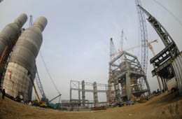 2007年是曹妃甸开发建设的“提速年”和产业项目“突破年”,工业区续建和新开发项目58个,累计完成投资近300亿元。图为正在建设中的曹妃甸首钢京唐钢铁厂。