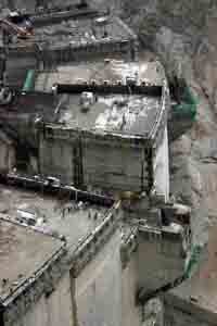 该电站预计2011年6月竣工,建成后将是黄河流域乃至中国北方发电量最多、单位千瓦成本最低的水电站,每年能提供102亿度电的清洁能源。图为紧张施工的拉西瓦水电站建设现场。
