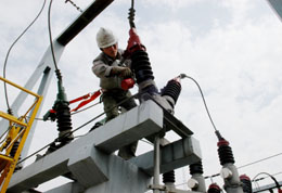 自3月份以来,安徽滁州供电公司对涉农供电设施进行全面检修,加大农网投入,保障农村地区春耕用电。图为滁州供电公司员工保养供电设施。