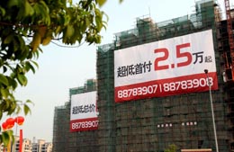 福州市一在建楼盘“五一”期间推出“超低首付、超低总价”的促销广告。