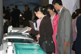 日前,第11届平壤春季国际商品展览会在平壤三大革命展览馆举行。来自17个国家和地区的220多家企业参展,其中中国企业占一半以上,达到125家。展出的商品包括电机设备、家电产品、化工产品、日用品等。图为平壤观众仔细观看海尔集团展出的洗衣机。