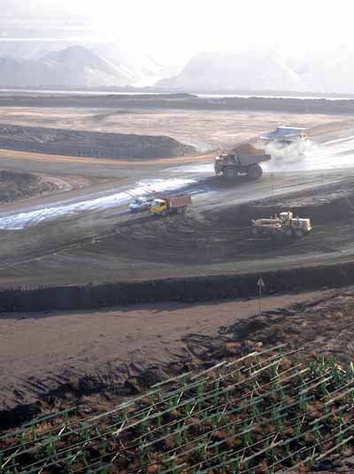 根据内蒙古煤矿安全监察部门发布的数据,截至11月底,内蒙古自治区严格落实国家有关安全生产和环境保护责任制度,克服宏观经济波动带来的一系列不利因素,在确保大型企业电煤供应的同时,煤矿生产安全、环保状况呈现顺利平稳态势。与去年同期相比,煤炭增产9358万吨,达到41600万吨。图为位于内蒙古准格尔旗境内的神华准能黑岱沟煤矿开采区井然有序。
