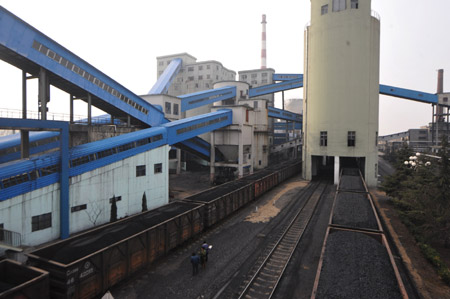 为应对全球金融危机,安徽省皖北煤电集团有限公司通过实施“应对危机工作体系”策略,实现低成本资源储备,增强企业发展后劲;加快老矿井技术改造等降低成本;实施以客户为中心的营销战略,扩大煤炭市场份额等措施,“三管齐下”抢抓机遇。2008年,该公司销售收入突破百亿元大关,在金融危机中实现逆市增长。图为皖北煤电恒源公司精选后的煤炭正在发车。