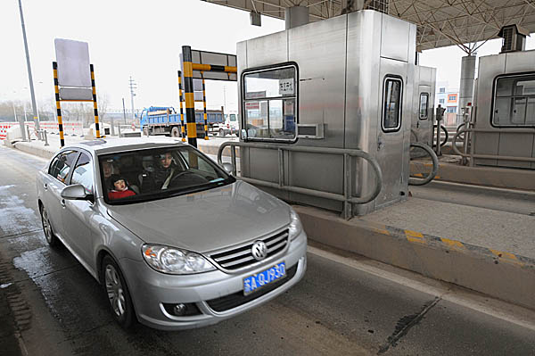 2月28日中午,汽车从已经停止收费的104国道南京高庙收费站免费通过。从2月28日24时起,江苏省全面停止省内政府还贷二级公路收费,一次性取消131个相关收费站点,其中南京的14个二级公路收费站点从中午12时起提前半天停止收费,车辆免费通行,收费设施将在半个月内完成拆除。取消政府还贷二级公路收费后,江苏省将增加免费公路里程近4500公里,全省一年将减征收费约10亿元。