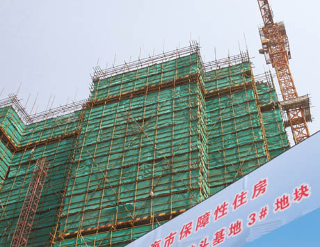 位于上海南汇的一处经济适用房工地(4月21日摄)。据上海市房管部门介绍,上海在2008年开工建设400万平方米经济适用房的基础上,2009年将再新开工建设400万平方米经济适用房。目前,全市已形成浦东三林、南汇航头、徐汇华泾、闵行浦江等多个保障性住房基地,首批房源将在下半年配售入市。