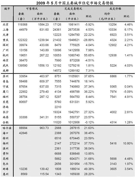 ■中国主要城市住宅市场交易情报(2009年5月)