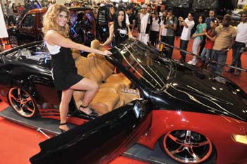 10月18日,第五届极限车展在巴西圣保罗举办,近百家参展商展出各种经过改装、装饰的汽车,吸引了上万名观众参观。新华社记者